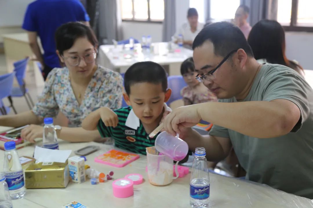 香薰石膏:在区总工会职工服务中心志愿老师的引导下,小朋友们与爸爸妈妈一起,把石膏粉调成石膏液、注入硅胶模具、静置凝固、脱模成型,通过一系列工序,得到了精致的花朵、可爱的小动物等石膏模型,神奇的变化让小朋友们惊叹不已。