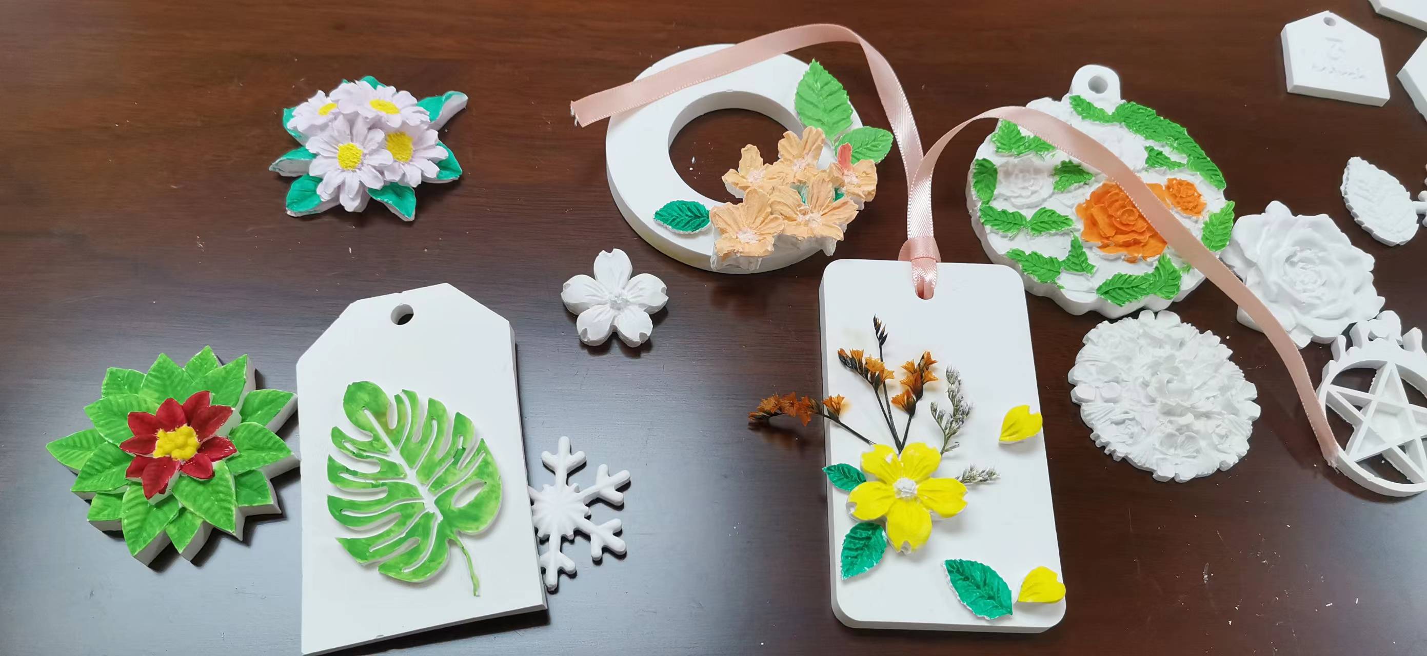 向石膏物品洒上香薰,并且涂上自己喜爱的颜料,一件赋予芳香和创意的DIY香薰石膏饰品完成了。通过作品展示和评比,进一步增加了小朋友们的成就感和探索求知欲望。