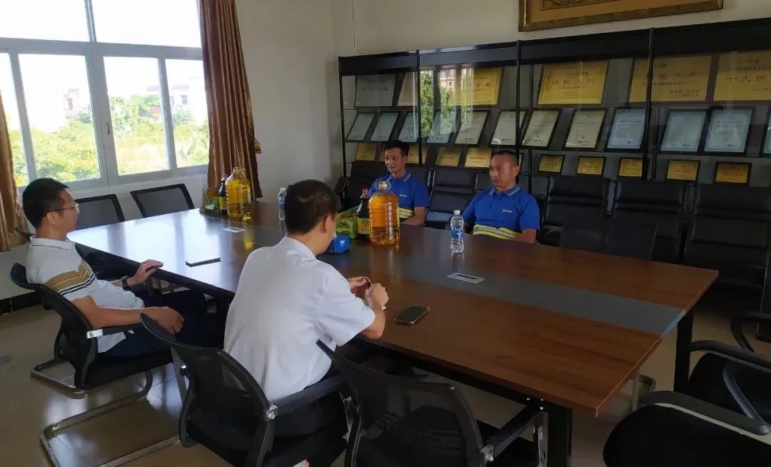 部室党支部书记林泽波、支部委员莫艳华与退伍军人陈永西和林伟座谈,了解他们的工作情况,听取工作建议,送上节日祝福和慰问品。