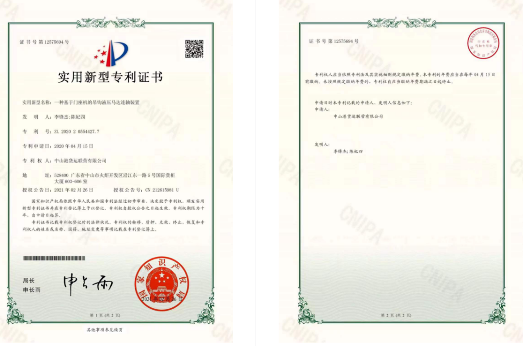 针对部分机械设备相关作业参数无法满足当前生产需要的问题,港机班组全体成员大胆开展相关技术改造和创新,提高生产效率,降低维修成本。以班组长李锋杰和技师陈妃四两位同志为主的技术团队,结合实际,对吊具旋转机构进行了技术改造,有效地解决部分门机起重余量不足的难题,基于该技术申报的“一种基于门座机的吊钩液压马达连轴装置”获得国家实用新型专利,极具推广使用价值。