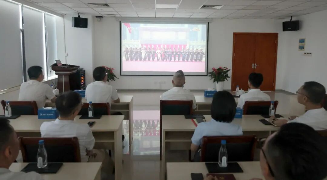 集团公司部室党支部开展“观看抗战胜利日阅兵式”主题党日活动,集团公司党委书记、董事长董文泽等在家党政领导、部室党支部全体党员等近40人集中观看纪念大会直播视频,集中学习习近平总书记在纪念大会上的重要讲话精神。当雄壮的《义勇军进行曲》奏响,全体人员庄严肃穆;随着威武的各军种仪仗队迈着铿锵的步伐走过,先进的武器装备和镇国重器列阵展示,震撼人心的场景让人心潮澎湃,民族自豪感油然而生。