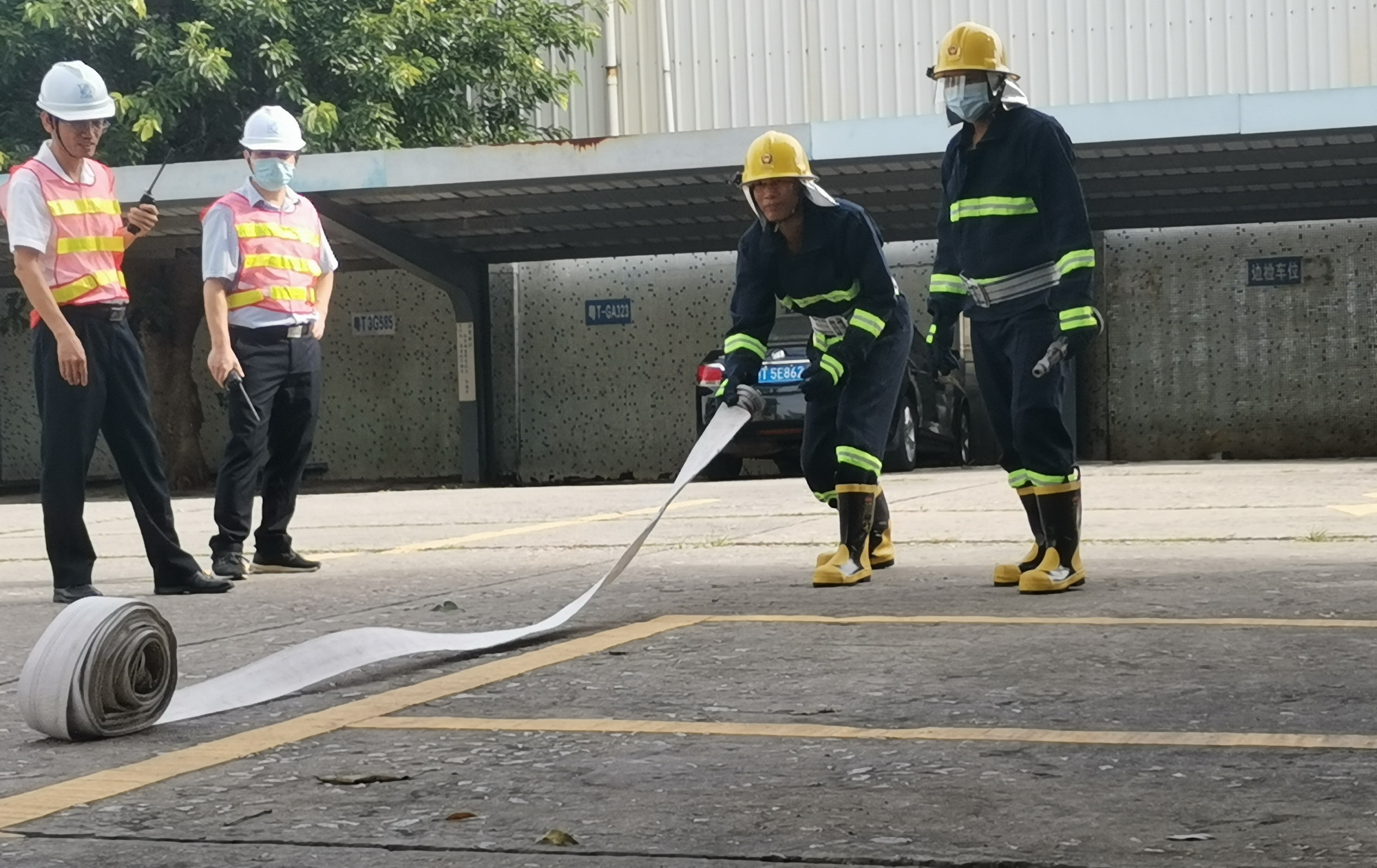6月26日,港澳分公司在港航大厦一楼停车场组织志愿消防队,进行实操和应急演练。港澳分公司安全管理人员为大家讲解了灭火器的灭火原理、使用方法及注意事项,并对动作的规范性和合理性进行了示范操作。演练队伍分组开展消防水龙带的抛掷、消防栓和水枪的连接等实操练;同时,模拟了仓库发生火警,志愿消防队员使用消防水和灭火器进行灭火演练。