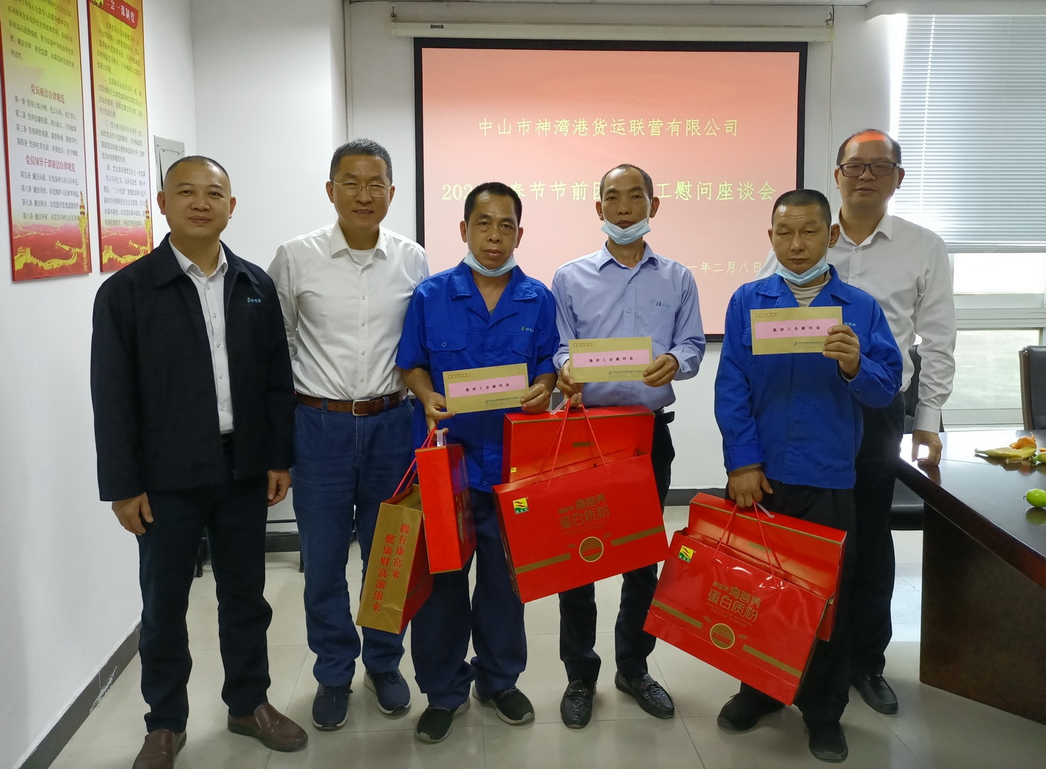 2月8日,中山港航集团主要领导带队分赴各基层单位开展春节前慰问活动,为响应“就地过年”倡议留守的一线岗位职工、困难职工送去慰问品;举办职工代表座谈会,面对面了解他们的工作和生活情况,听取工作意见;同时,走访慰问困难党员和病患职工,送上新春祝福。