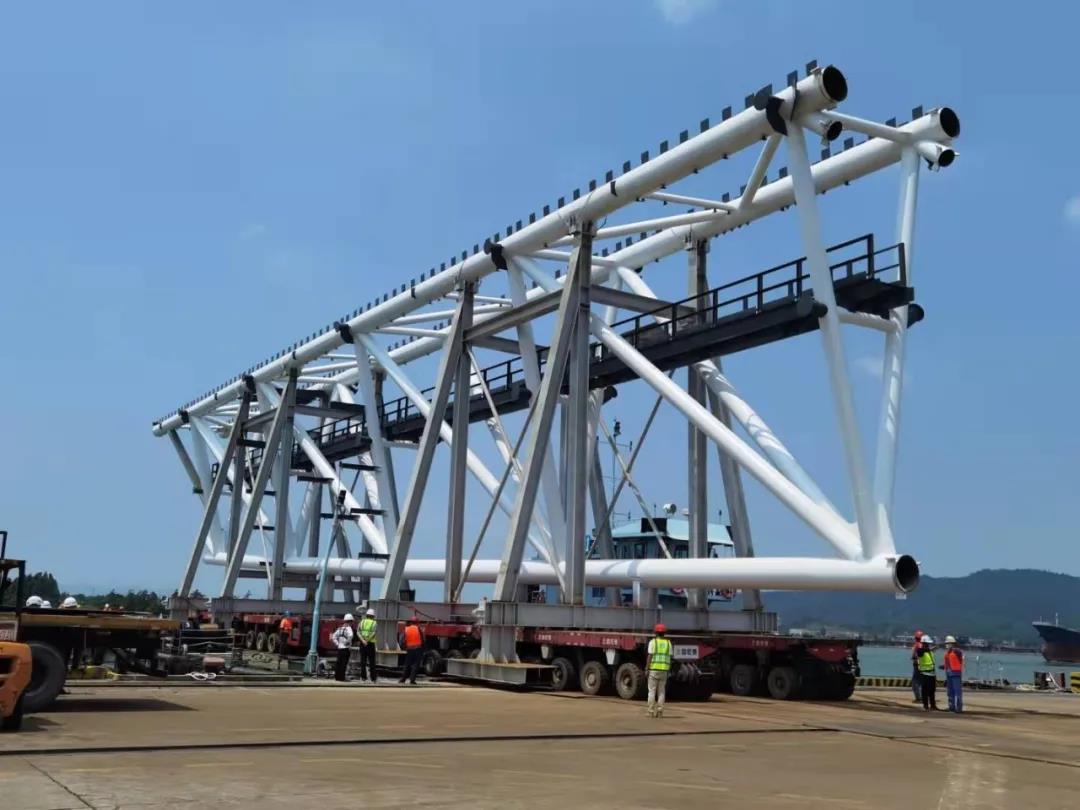 认真做好前期报关、协调和现场勘察等准备工作;同时,积极与中建科工集团、中艺重工等货主单位加强沟通,共同研究核准运输线路,制订安全运输方案和综合防疫方案,在市交通运输局、神湾镇政府的指导下,在海关、海事、边检等口岸部门的监管下,将安全、防疫工作细化到各项工作流程当中,为滚装出口作业保驾护航。神湾港与中建科工集团的首次成功合作也将为后续承接类似大型钢构件出口业务奠定良好基础。
